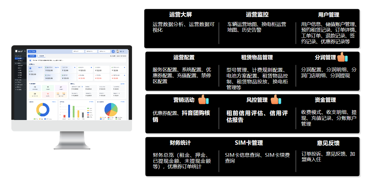 ✅ 租车+换电联动:与换电柜系统打通,打造“骑手高频复购”场景。